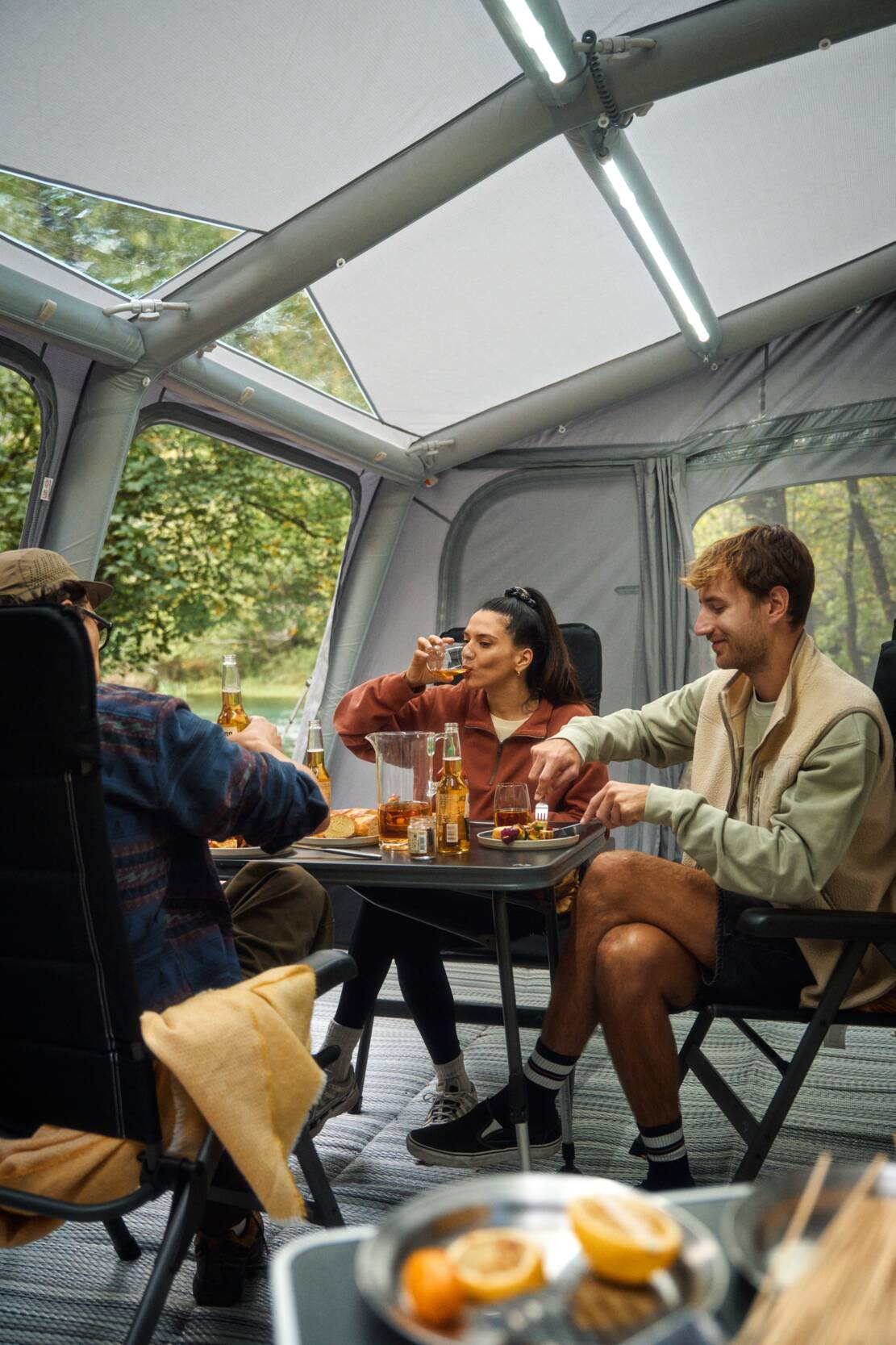 - Anneks: Hvis du trenger en egen soveavdeling eller et rom for oppbevaring — anneks gir deg en separat avdeling med lavere takhøyde, men full gulvplass. Anneks er også oppblåsbar og passer teltene i alle høyder.