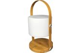Flott LED Lampe i bambus og plastikk med bryter og 6 LED lys. Lades opp med USB stikk, 1,2 meter ladekabel følger med. Ladetid på 3 timer. Lampen har to lysnivåer, med brukstid på 8 timer og 4,5 timer. Fire belysningsmuligheter; svakt lys med kald farge, sterkt lys med kald farge, svakt lys med varm farge og sterkt lys med varm farge.
