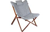 Denne stolen har en stilig og solid treramme. Setet er laget av Oxford polyester og har et lin utseende. Stoffet har også en behagelig, polstret fylling. Kombinasjonen av et ekstra bredt og dypt sete, polstret stoff og puten gjør denne stolen ekstremt komfortabel. Rammen kan foldes opp slik at setet er lett å bære.