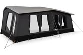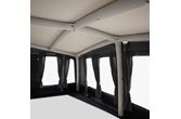 Monteringen er enkel og effektiv med én enkelt lufttilkobling. Forteltet pumpes opp fra ett punkt, og både elektrisk pumpe og vanntett underlag følger med som standard. Front og sidepaneler kan tas helt ut med glidelås for lavere vekt eller mer åpen løsning på varme dager. Innvendige gardiner gir effektiv solskjerming og enkel justering av lysinnslipp.