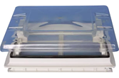 Fiamma Vent 50 Takluke 50x50 cm kan åpnes på alle fire sider med praktiske håndtak utstyrt med tyverisikring for å forhindre innbrudd.
