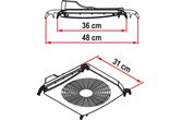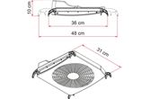 Fiamma Turbo Kit Vifte Takluke består av et ventilasjonssystem (12 Vdc) med en vifte på 24 cm i diameter og 2 justerbare festestenger fra 36 til 48 cm. Det justerbare opphengsystemet gjør montering mulig på alle takluker fra 40x40cm (ikke Fiamma) til 50x70cm.