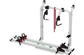 Sykkelstativ for varebiler med doble bakdører, med variabel akselavstand fra 58 til 62 cm for å kunne tilpasse seg forskjellige bakdører.