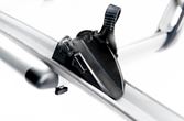 Enkelt justerbart system: Skinnene kan justeres fra venstre mot høyre. De glir lett slik at du uten problemer finner den beste posisjonen for syklene. De justerbare hjulholderne sørger for at du kan feste alle sykler på sykkelstativet, fra terrengsykler til barnesykler.