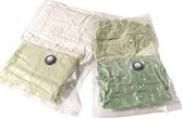 Compactor vakuumposer er vakuumposer av høy kvalitet som gjør at du kan spare opptil 75% av plassen når du lagrer dyner, puter, klær og sengetøy. Fyll posen med tekstiler og fjern luften med støvsuger. Den patenterte tilbakeslagsventilen sikrer at luften ikke går ut igjen og glidelåsen sikrer at posen forblir lufttett, perfekt for langsiktig oppbevaring eller reise.