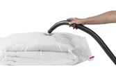 Sett med to poser, i str L og XL. L posen kan romme en enkeltdyne, og XL posen kan romme en dobbeldyne . Laget av sterk, holdbar nylon og polyeten for å beskytte innholdet og sikre at posen holder sin form . Universalventilen er kompatibel med alle typer støvsuger