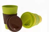 Kruset har en matt overflate, noe som gir et enklere grep og understreker det naturlige preget. Koppen har også silikonhylse for å beskytte mot varme og silikonlokk.
