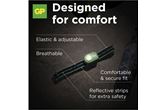 Det forhåndsmonterte hodebåndet er fleksibelt, pustende og behagelig å ha på og holder seg godt hodet, selv når du er på farten. Båndet har også en reflekterende overflate i midten av hodebåndet, som går hele veien rundt, noe som sikrer økt synlighet fra alle retninger. Den justerbare lysvinkelen gjør at lyset kan være nøyaktig rettet mot ønsket posisjon, noe som gjør den lettere å bruke.