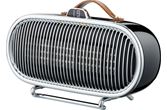Vifteovn i stål med retrodesign. Bærehåndtak i skinn og frontgitter. Den kan også brukes som vifte for luftsirkulasjon på varme dager. Behas vifteovner er et godt alternativ for hurtig oppvarming av kalde rom.