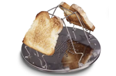 Bruk gass-blussen for enkelt å tilberede toast. Den sammenleggbare, lett transportable brødristeren vil forberede opptil fire skiver om gangen.