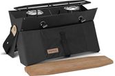 Eikelokk beskytter brennerne under transport og fungerer utmerket som skjærebrett og serveringsfat. Stoffet som lukker rammen er laget av slitesterkt G1000-materiale og fjernes lett for rengjøring. Integrert skulderstropp gjør Onja lett å kaste over skulderen og bære på hverdagsopplevelser med familie og venner.