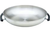 Wokpannen er laget av høykvalitets rustfritt stål med innkapslet aluminiumsbunn.