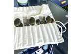 Legg til 16-delers bestikksettet til din campingservisesamling. Bestikksettet kommer i en praktisk oppbevaringspose med forskjellige rom for å oppbevare gafler, kniver og skjeer separat. Bare rull ut posen og dekk bordet for hele familien. Bestikksettet tåler oppvaskmaskin, er lett i vekt og laget av 100 % rustfritt stål for å vare livet ut.