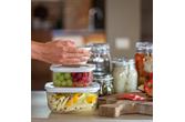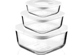 Lufttette borosilikatglassbeholdere med lokk er perfekte for oppbevaring av mat i fryseren eller kjøleskapet, oppvarming i mikrobølgeovnen, tilberedning i ovnen, eller transport og servering hjemme. Stablebar, plassbesparende firkantet form Kan brukes til å lage mat i mikrobølgeovn uten lokk eller i en tradisjonell ovn Innovativ vindventil gjør det mulig å bruke i mikrobølgeovn opp til 100° med lokket på.