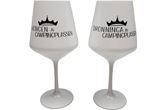 Vinglass Dronninga av Campingplassen & Kongen av Campingplassen 2 stk Hvit