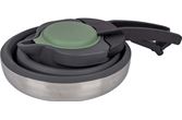 En sammenleggbar tekjele/kaffekanne. Denne kannen er laget av høykvalitets silikon. Dette sikrer at kannen er veldig solid, varmebestandig, holdbar, smaks- og luktfri. Har låsbart lokk og bunn i rustfritt stål og et solid håndtak. Etter bruk kan den brettes kompakt til en høyde på kun 6 centimeter.