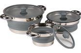 Lag en godbit og spar verdifull plass på campingturen din med sammenleggbart kjøkkenutstyr i rustfritt stål. Tilgjengelig som komplett produktserie eller selges enkeltvis.