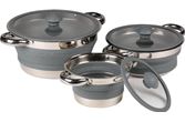 Lag en godbit og spar verdifull plass på campingturen din med sammenleggbart kjøkkenutstyr i rustfritt stål. Tilgjengelig som komplett produktserie eller selges enkeltvis.