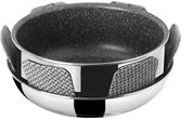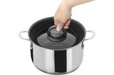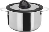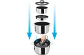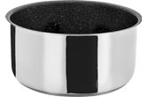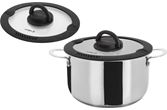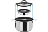 Kokesettet er laget av rustfritt stål i høy kvalitet som gjør den ideel for matlaging på campingturen. Pannene er av Non-stick, og passer til gasskomfyrer, keramiske kokeplater, elektriske kokeplater og inkuksjonstopper. Kaserollesettet kan stables og transporteres trygt. Det stablebare vakuumblokksystemet forhindrer irriterende rasling og utglidning av grytene og reduserer dermed riper.