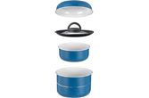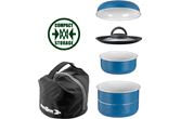 Dette kokekarsettet for fritidskjøretøy og båter er perfekt for alle som ønsker å lage mat i bobilen, campingvognen eller båten. Settet består av gryter og panner av høy kvalitet med en induksjonskompatibel bunn og ripebestandig keramisk non-stick-belegg. Grytene og pannene kan stables inni hverandre for å spare plass og har et nyutviklet håndtak og koblingssystem (Magnetogrip), som muliggjør en betydelig reduksjon i pakkestørrelsen på grytesettene ved å bruke nedfellbare håndtak med integrerte magnetiske elementer og gjør også bruk av en surringsstropp for å stabilisere kjelen og pannen under transport unødvendig.