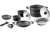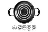 Non-stick overflate som reduserer risikoen for riper. Eliminerer irriterende lyder under transport. Kan brukes på elektriske, LPG, induksjonstopper og keramiske kokeplater.