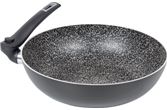 En aluminiums-panne med foldbart håndtak. Leveres med et 5-lags belegg og en anti-slip bunn. Denne pannen har et foldbart håndtak og bruker derfor lite plass og er lett å ta med på campingferien.