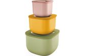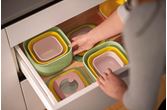 Lufttette beholdere med lokk, ideell for oppbevaring av mat i fryseren eller kjøleskapet, oppvarming i mikrobølgeovnen uten å ta av lokket, og transport og servering i og utenfor hjemmet. Firkantet form for å muliggjøre stabling og spare plass. Beholdere uten lokk er laget av biobasert plast, som er avledet fra plantebiomasserester og avfall, noe som gjør den fornybar, ikke fossilbasert og 100 % resirkulerbar.Beholderne uten lokk er laget av biobasert plast.
