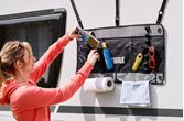 Oppbevarer nødvendig utstyr lett tilgjengelig. Oppbevaringsrom: 5 nettinglommer, 14 elastiske løkker, 1 penneholder, 2 tørkepapirholdere.