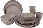 Dette beige Hoxton servisesettet fra Urban Outdoor-kolleksjonen har et robust og steinlignende utseende. I tillegg til det robuste designet er serviset veldig lett og solid. Serviset er supert å bruke på campingplassen, da det er tilnærmet uknuselig og ripebestandig. I tillegg er Hoxton servise også utmerket til bruk både hjemme og i hagen! Settet med 16 deler er laget av høykvalitets 100 % melamin, tåler oppvaskmaskin og er matgodkjent. Dette stilige settet passer for 4 personer og består av: