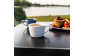 Dekk opp campingbordet med Travellife Soria 16-delers servise. Serviset er laget av solid melamin, men har et matt keramisk utseende. Koppene, skålene og tallerkenene fra dette settet er ripebestandige og tåler oppvaskmaskin.