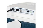 Fyll kjøleren kvelden før avreise og koble den til strømnettet med 230V-støpselet. Sett deg inn i bilen og koble den til sigarettenneren for å holde drikke og mat kjølig under reisen. Når du kommer til stranden eller parken, kobler du bare kjøleren til en strømbank (ikke inkludert) med USB-pluggen. På denne måten er du uansett hvor du er, forsynt med kalde drikker. I tillegg er det inkludert en romdeler som fungerer som et fryseelement for å holde produktene ekstra kjølige