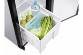 Til tross for det kompakte designet får du plass til alt du trenger på tur. Kjøleskapet har blant annet en praktisk uttrekksskuff spesielt tilpasset flasker og grønnsaker, samt justerbare hyller og dørhyller. Det moderne LCD/LED berøringspanelet gjør betjeningen enkel, og automatisk energivalg sørger for at kjøleskapet alltid velger riktig strømkilde.