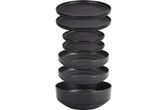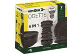 6 i 1-settet er resultatet av vårt søk etter en elegant, funksjonell og plassbesparende løsning for enhver reise, campingtur eller utendørs piknik. Den er laget av høykvalitets Stonetouch-melamin og inneholder ikke mindre enn 7 deler: 2 middagstallerkener, 2 suppetallerkener, 2 desserttallerkener og en stor salatskål som rommer hele settet og tar svært liten plass.