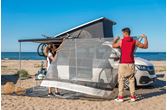 Laget av gjennomsiktig lysfiltrerende stoff, som delvis blokkerer lyset. Den kan rulles sammen med praktiske festeklips. Leveres med tau og knagger for feste.