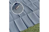 Mørk grå vevet polypropylen, kantsydd. Hull i hjørner for plugg som sikrer stabilitet og holdbarhet.