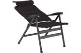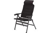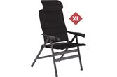 En meget luksuriøs og ekstra romslig campingstol. Denne stolen er utstyrt med justerbar hodestøtte og har en bredere konstruksjon. Tilbyr maksimal komfort på grunn av den 7-posisjons justerbare ryggstøtten og det polstrede stoffet. Det behagelige fyllet i dette stoffet har en åpen cellestruktur slik at ingen fuktighet holdes på. I tillegg er både ryggstøtten og armlenene med ergonomisk form og armlener utstyrt med ergonomisk ramme. Stabilitet og robusthet. Stolen har et ekstra bredt sete. Når den er slått sammen, er den lett å ta med seg.