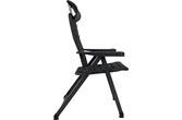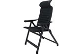 En ergonomisk 7-posisjons justerbar campingstol. Stolen er laget i en firkantet ramme og utstyrt med stabiliseringsføtter slik at stolen alltid er stødig. I tillegg er stolen utstyrt med justerbar hodestøtte. Den komfortable og elegante polstringen er ekstra pustende og holder ikke på fuktigheten på grunn av sin åpne cellestruktur. Som et resultat tørker stolen mye raskere enn stoler med tradisjonell skumpolstring. Tilbyr maksimal komfort på grunn av 7-posisjons justerbar ryggstøtte. Både rygg og armlener er ergonomisk formet. Stolen har en anodisert H-ramme for ekstra stabilitet og styrke. Dens unike design gjør stolen kompakt å slå sammen og lett å bære.