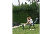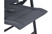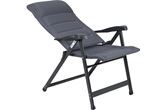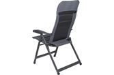 En luksuriøs hvilestol. Denne stolen tilbyr maksimal komfort med 7-posisjons justerbar ryggstøtte og polstret 3D-stoff. Den komfortable polstringen til dette stoffet er ekstra pustende og holder ikke på fuktigheten på grunn av sin åpne cellestruktur. Som et resultat tørker stolen mye raskere enn stoler med tradisjonell skumfylling. I tillegg er både ryggstøtten, setet og armlenene ergonomisk formet. Stolen har en anodisert H-ramme for ekstra stabilitet og styrke. Når den er sammenslått, er denne stolen kompakt og derfor lett å bære.