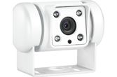 Nesten usynlig kabelføring er en optisk funksjon ved dette lille hvite fargekameraet for fritidskjøretøy. Det leveres med alle viktige funksjoner, som mikrofon, temperaturstyrt varmeapparat eller separate IR-LED-lamper for best mulig sikt i mørket.