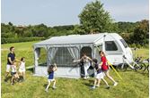 Komplett sett med front- og sidevegger, samt Caravanstore XL markise. Den eneste posemarkisen med fortelt festet med vind- og vanntett glidelås. Den innovative markisen sammenføyer sidepanelene til markiseduken med 2 solide YKK glidelåser. Markisen leveres komplett med markise, frontvegg med dør og 2 sidevegger med vinduer som kan åpnes. Markisene leveres også med Rapid Set CS strammestang i senter, gardiner for 3 vinduer (London) og oppbevaringsbag.