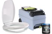 - Delene inkluderer et sete med lokk og en ny septiktank
