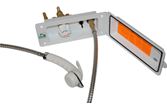 Elegant og funksjonell dusj‐uttaksboks fra REICH, til bruk i bobil, caravan eller fritidskjøretøy. Boksen leveres komplett med bryter, dusjslange og integrert blandekran – alt monteringsklart for å gi høy komfort og enkel installasjon.